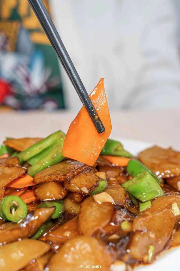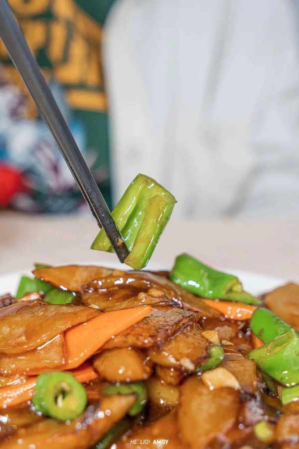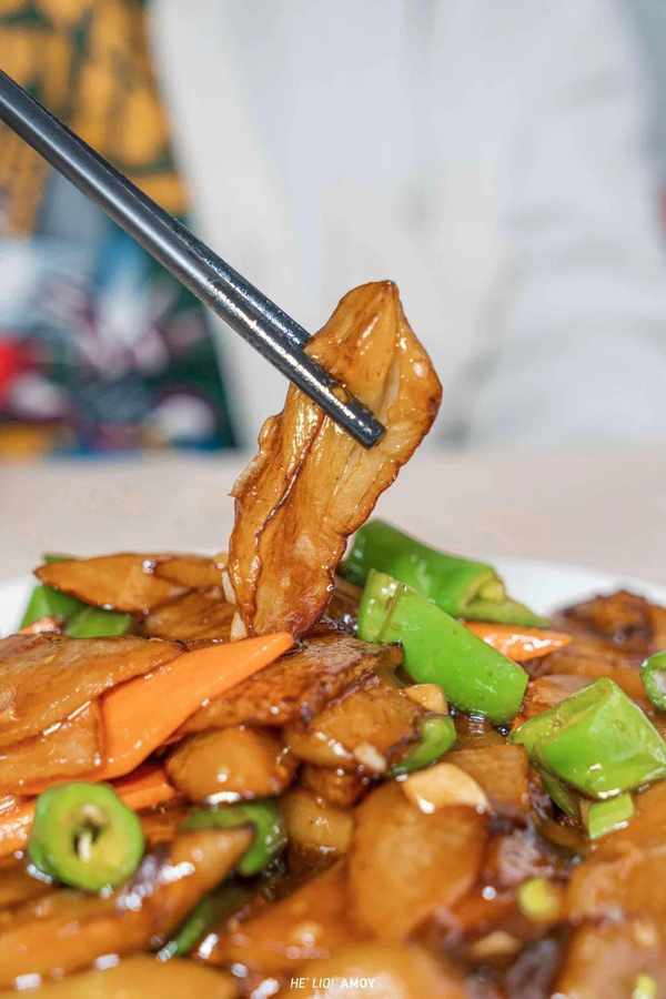 配角的表现也同样出彩,青椒与胡萝卜,作为爽脆的代表,在展现生脆实力的同时,也提升了菜品的色泽。没有特别的油腻质感,也没有令人发齁的咸味,下饭恰到好处!