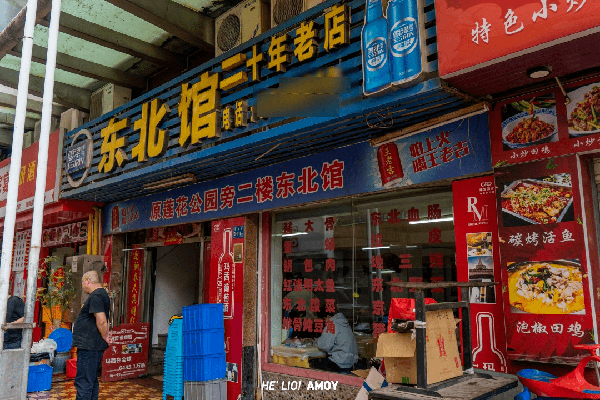 搬迁后的「东北馆」,还是从前那副“大大咧咧”的模样,蓝底黄字的如同“大排档”一般的门头,很难令人联想到这是家20+年的东北馆子……