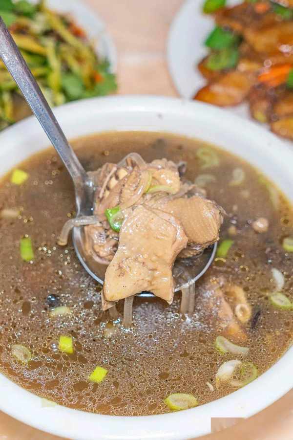 谁能抵挡这阵诱人的香气?当然是先喝上一碗浓香的汤汁啦!鸡肉的鲜甜与榛蘑的鲜香,在大火的烹煮下,完美融汇于鲜汤之中,一口清香,两口回甘,一碗接一碗,根本停不下来!