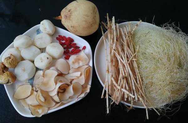 主材料:玉米须15克,海底椰15克,马蹄80克,茅根80克,雪梨1个,枸杞子6克,无花果3个