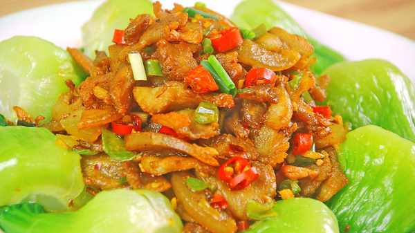 食材清单:小油菜、五花肉、青椒、小米椒、大蒜、姜末、盐、生抽、料酒、胡椒粉