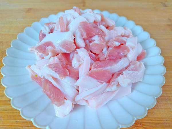 1、五花肉1斤,清洗干净后切片。