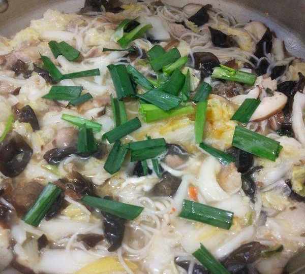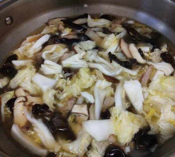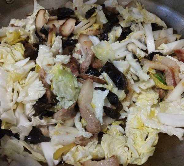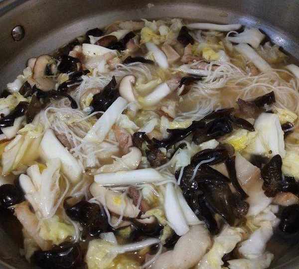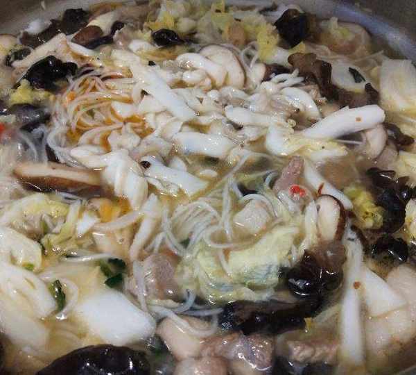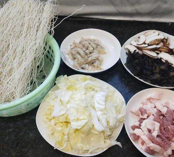原料:粉干、蛏子、五花肉、娃娃菜、木耳、香菇、蒜苗、生姜、食用油、盐、鸡精、料酒。