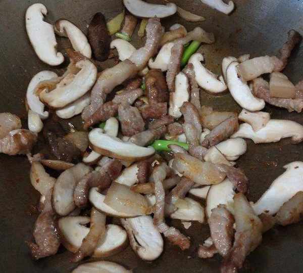 第6步、倒入香菇,翻炒几下。