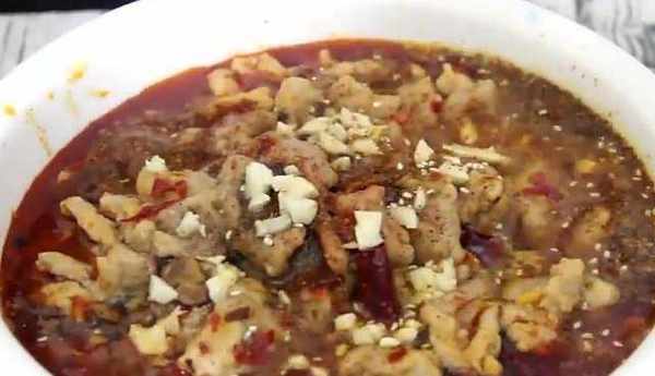 一勺胡椒粉,一勺鸡精,加少许的生抽。加一勺白糖。味道。煮开以后我们用筷子将肉片依次下入汤中。大火煮大约三分钟左右,捞出放到配菜上,然后淋入汤汁。在上面放入一勺的辣椒粉,爱吃辣的可以多放一点,放半勺的。花椒粉,少许的白芝麻,加入蒜末,然后领入热油,这道非常好吃的水煮肉片就完成了。