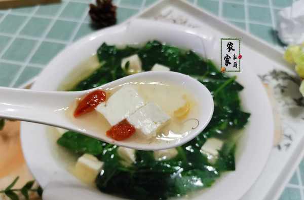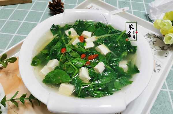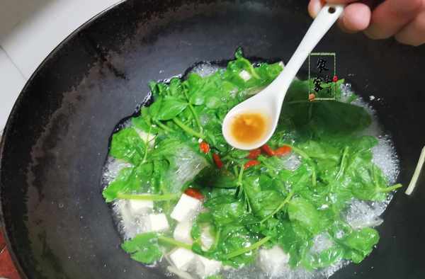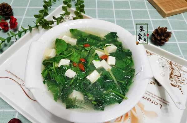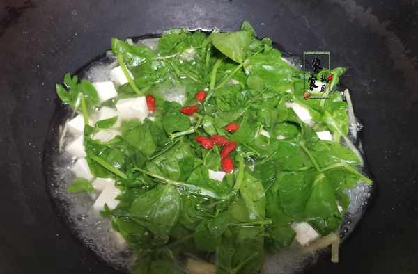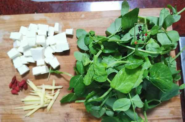 豌豆芽、豆腐、生姜、枸杞、食盐、味精、胡椒粉、蒜蓉香油