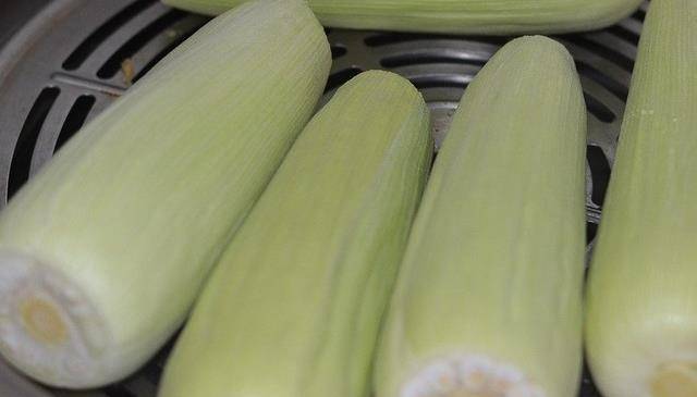 1.新鲜玉米,剥去外皮老叶,用刀去除两端和中层叶子,只留下里层嫩叶子,上笼蒸熟。这里有朋友会问,这样不怕有虫子吗?其实细心察看,长虫子的玉米,看叶子都能看出来的哦。