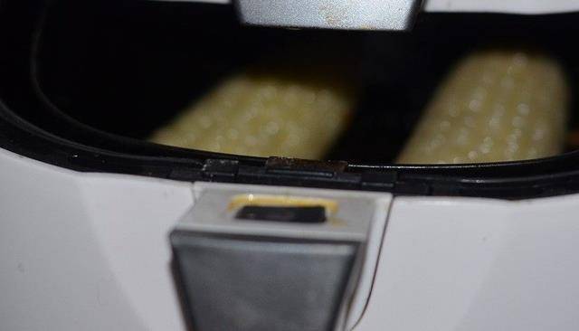 3.将玉米棒趁热匀称的刷上油,放入空气炸锅或者烤箱中。