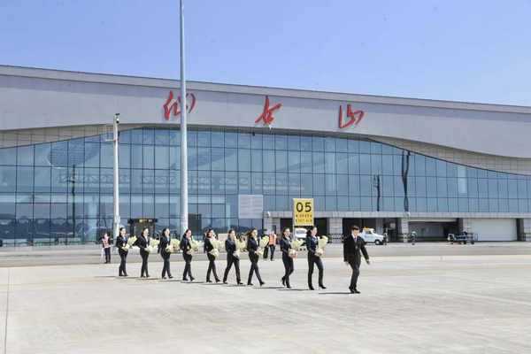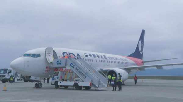 14时37分,从济南起飞,首趟航班平安降落在仙女山机场,航班落地后,所有的设施设备和人员均已就位,安检护卫、地面服务各运行保障工作岗位有条不紊地开展工作。在经过60分钟的检修,加油和乘客上下机后,这趟航班又如约起飞,向着终点站成都飞去。