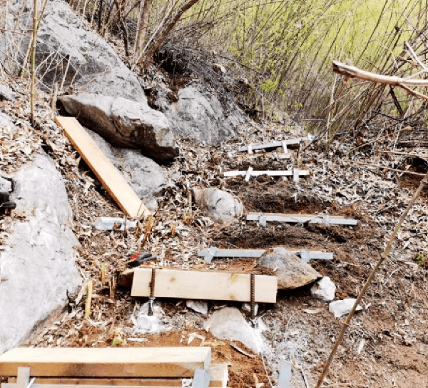索道上站高压供电线路日常巡检需通过狭小陡峭的通道,维修人员仅能徒手抓树枝藤曼,脚踩石缝缓慢通行,人身安全无法得到保障,夏季毒虫多发的潜在危险也为日常巡检工作带来了安全隐患。运营管理部工作人员经过20天的不懈努力,通过对巡检路线进行整修,极大提升了巡检线路的安全可靠性。
