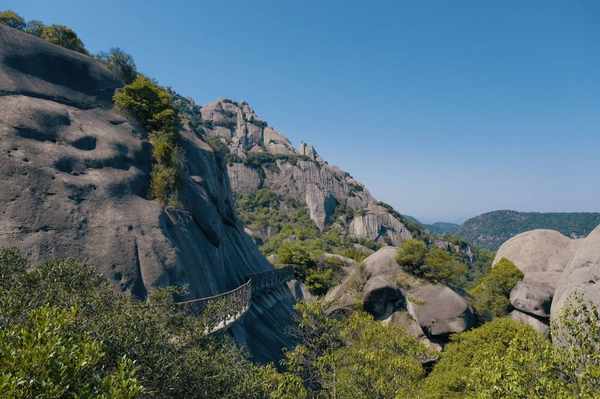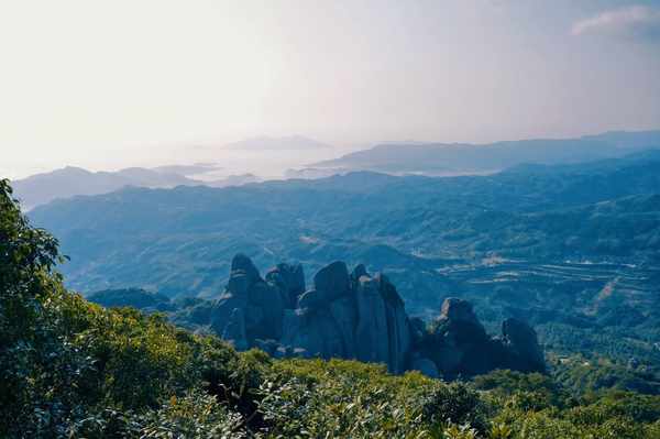出将军洞,岭底可观高40余米的擎天巨柱 天柱 峰,两条山道通往大 磐石 、观海台,皆是登高望海观景好去处。