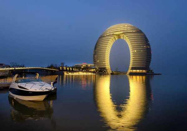 现代建筑:澳门旅游塔、金莲花广场、融和门、渔人码头、氹仔大桥。