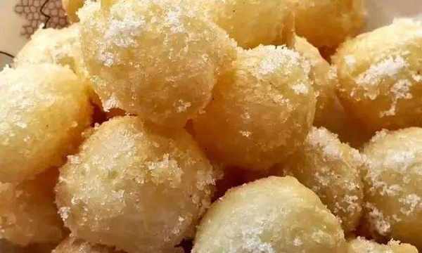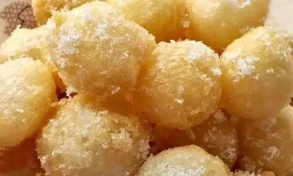 3.炸糯米团可直接食用也可放入白糖拌匀后食用,这可依个人喜好加入。