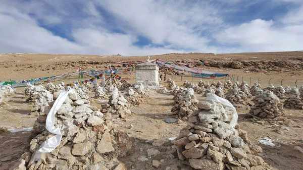 莲师掐指一算,原来是深井打到了龙脉,井底下是一条孽龙作祟。于是莲师带着牧人们,在井的周围修建起108座佛塔,用佛法镇住孽龙。然后在井口加了一个盖子,莲师告诉大家,白天取水可以打开井盖,但到了晚上一定要把用盖子挡住井口。从此孽龙就再也没有兴风作浪。经过了几百年的雨雪风霜,大概是那108座佛塔倒塌损毁了,牧民们就在佛塔的基座上用石头垒成小玛尼堆,继续发挥着震慑孽龙的作用。这就是我们今天在湖边看到的这一片遗迹。这么说来,这些石碓的历史堪称悠久。莲师进西藏传佛法是8世纪中后期,大概和安史之乱的时期差不多,这么算来,这些石堆可能已经有1200多年的历史了。