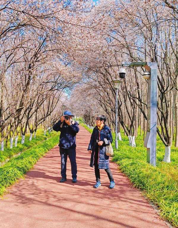 充满着春日浪漫气息的紫叶李大道吸引了不少市民前来赏春,相机随意一拍,都是一幅热情浓郁的油画。