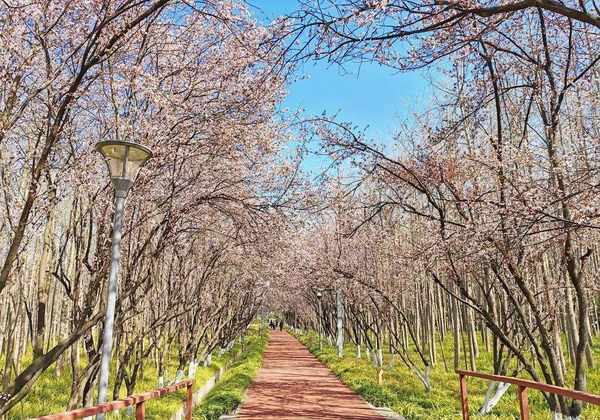 外环林带生态绿道的紫叶李观赏大道位于空港八路入口处的3米路林带,眼下,紫叶李已悄然惊艳,粉白相间的紫叶李花连成一片,一丛丛、一簇簇,微风拂过,落英缤纷,如繁星坠落,又似细雨飘洒,唯美梦幻。