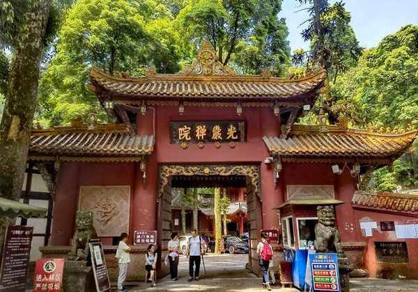 光严禅院古寺始建于晋代,原名常乐庵,晋文帝赐“光大严明”匾。明朝永乐年间,为避“乐”字之讳,蜀献王朱椿奏请敕赐寺名“光严禅院”,俗称古寺。