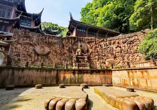 接引殿旁边的“释迦牟尼八相成道图”浮雕让人震撼,规模大,上面的人物栩栩如生。