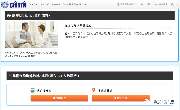 而近年来独居老人的问题,也得到了一定关注,在日本CHINTAI等租房网站上,也设置有老年人公寓页面,供用户选择。