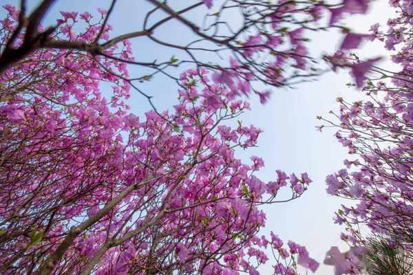 杜鹃,是杜鹃花科杜鹃花属的落叶灌木,高2-5米,分枝多而纤细。叶为革质,常聚集生在枝端,呈卵形、椭圆状卵形或倒卵形,前端短逐渐变尖,叶子边缘微微反卷并带有细齿,上面深绿色,下面淡白色;花冠呈阔漏斗形、倒卵形,一般2-6簇生于枝顶,有玫瑰色、鲜红色或暗红色,花期4-5月,果期6-8月