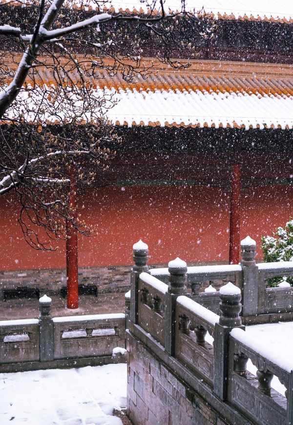 每次去朝天宫看雪景,总会想起雪中的北京故宫。如果我拍摄一个小场景,它与它非常相似。毕竟两者的建筑颜色几乎是一样的。