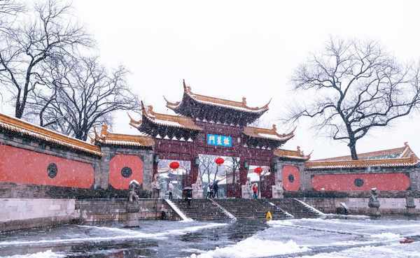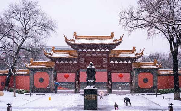 很多人可能只知道南京夫子庙一个文庙。其实朝天宫也是一座文庙。早在宋代,就有文轩庙、文庙。进入朝天宫,映入眼帘的是磐池和灵星。文庙山门、孔子塑像等标志性建筑,雪中的文庙显得格外美丽,与这里的建筑密不可分。