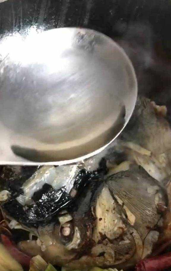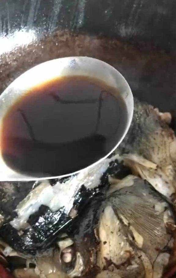 来勺酱油,让鱼头增加点颜色,显得那么的惨白,也可让汤汁带点轻轻的酱香味。