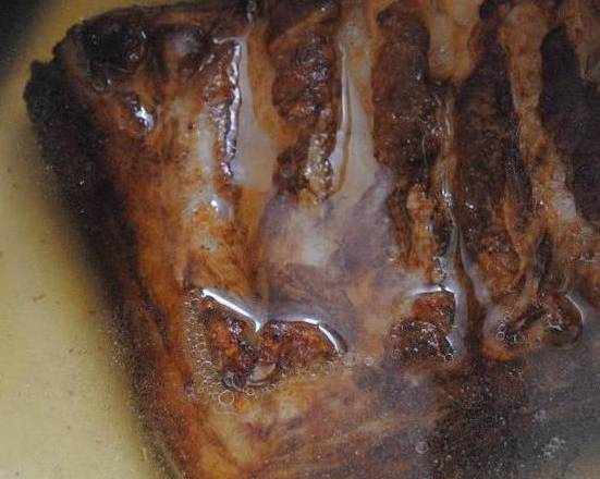 放入五花肉块,立刻盖锅盖!立刻盖锅盖!立刻盖锅盖!油有爆炸的可能,所以要注意安全,火转小火,等到抹油爆炸声可以用无水的铲子推动一下肉块,翻身肉块炸至猪皮色变红黄即可出锅......