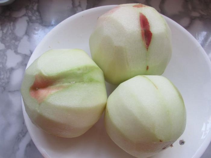 桃子是我家很喜歡的一種水果,每到夏秋季節就會大批的上市。桃子含有多種維他命,果酸以及鈣,磷,鐵等礦物質,尤其是鐵的含量較高,很益於身體的健康。所以桃子素有"仙桃"、"壽果"之說法。今天我們做一鍋桃羹,我們先來把桃子洗淨去皮。