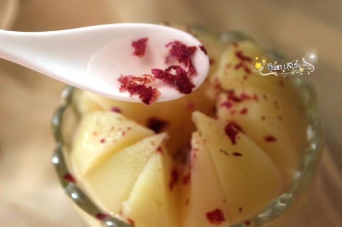 所用資料:桃子3個,玫瑰3朵,老冰糖適量。