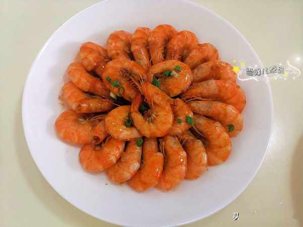 4,一直中火煸炒,炒到大蝦紅豔豔,炒到變得汁水已經很濃稠裹到了大蝦的上面,就可以關火了,擺到盤中,撒上小葱末即成。