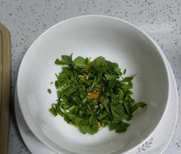 2、在煮冬瓜汤的过程中,我们找来一个干净的碗,碗中放入香菜,几滴香油。冬瓜汤煮好以后,倒入碗中即可开吃。