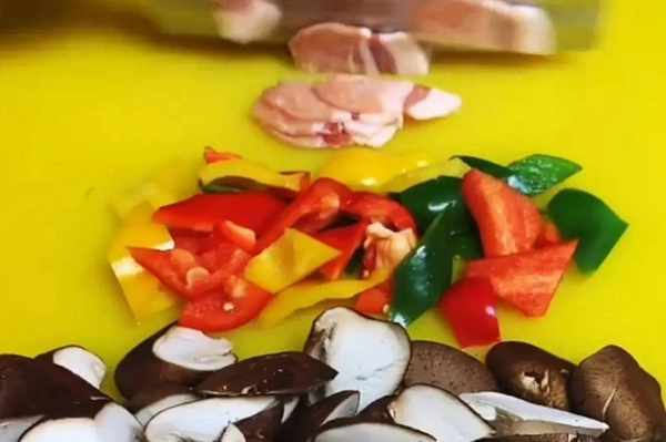 顺道咱们再来点青红辣椒搭配一下颜色,这样可以增加食欲的视觉感。