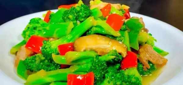食材:西兰花、香菇、五花肉、青红椒、生姜、大蒜