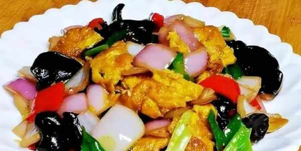 食材:洋葱、黑木耳、鸡蛋、青红椒、大蒜、青蒜苗
