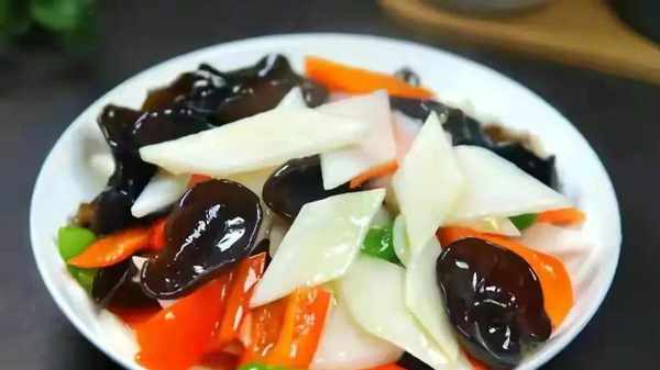 食材:山药、青红椒、黑木耳、胡萝卜、大蒜