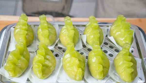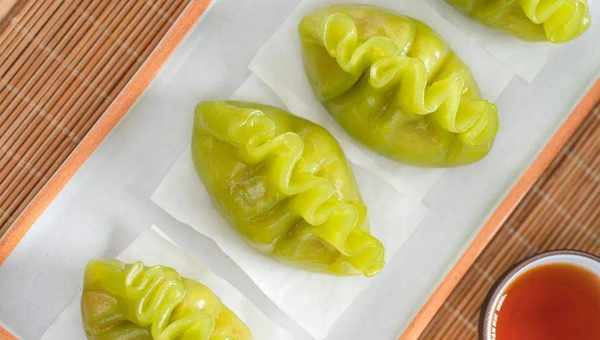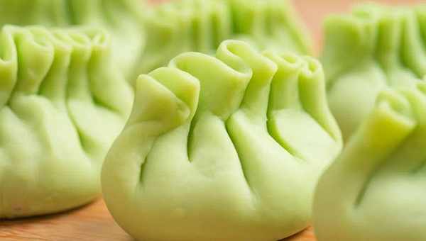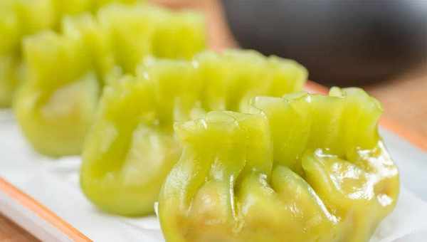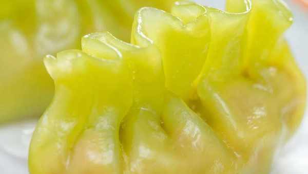 浅浅的绿色外皮,隐约透出里面藏着粉嫩的馅料,却又没被完全看透。