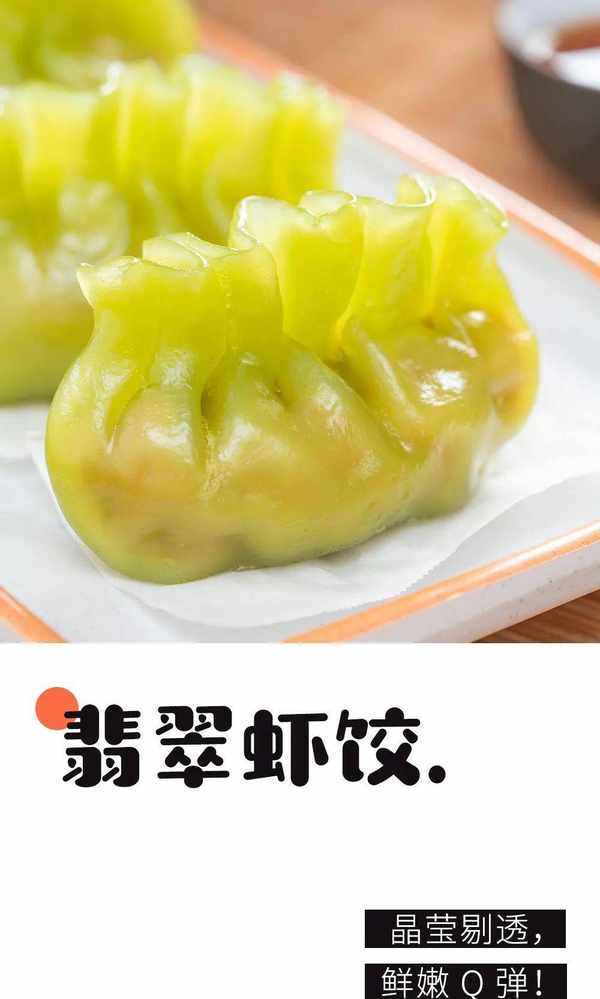 我今天的虾饺配方,改良了一下,透白的皮染作翠绿,饺皮口感不变,照样是Q弹软滑,味觉和视觉上,显得更清爽~