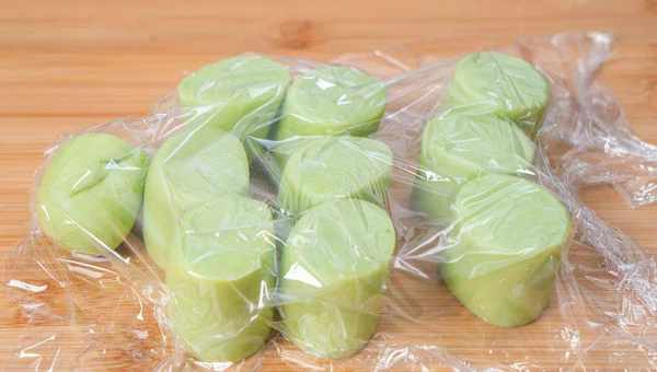 翡翠皮:菠菜30g 清水30g 澄面200g 马铃薯淀粉120g 盐2g 沸水300g 猪油10g