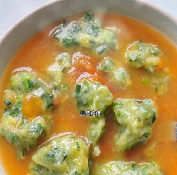 起锅烧油,葱姜爆香,放入西红柿块炒出汁,然后加入水,再大火烧开,最后再把韭菜糊做成丸放入锅中,煮到飘起,最后加入盐味和胡椒粉出锅即可。