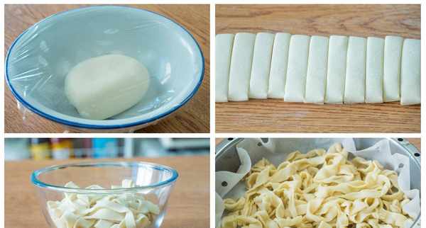 10、手擀面就做好了,装入碗里后再加1点点食用油,然后用手抓一抓防粘;