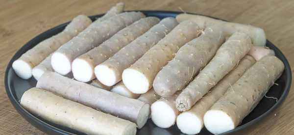 1、这是一斤铁棍山药,洗干净后切小段儿,然后直接上锅蒸,大火10分钟就能完全蒸熟;