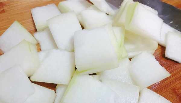 1、准备一个小冬瓜,削皮后改刀切片,洗净后沥干备用;