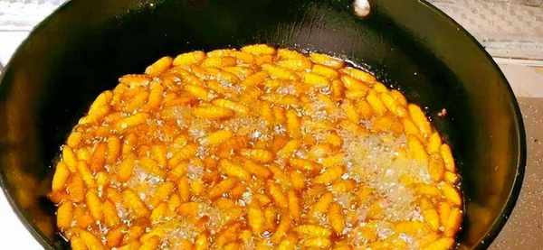 蚕蛹买来后,清洗干净,锅里来上三勺油,油温七成热,把蚕蛹下锅,中火炸制二分钟,然后将其捞出来控干油分,锅留底油,把葱蒜辣椒段,孜然粒炒香后,把蚕蛹下锅,撒点孜然面,辣椒面,白芝麻,咸盐,小葱花,翻炒均匀就可以出锅了,口感酥脆高蛋白,常吃强壮少生病。