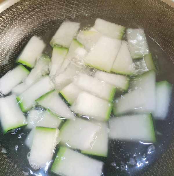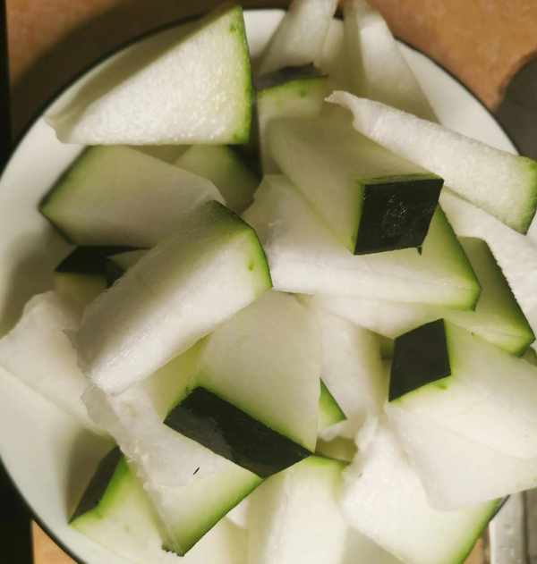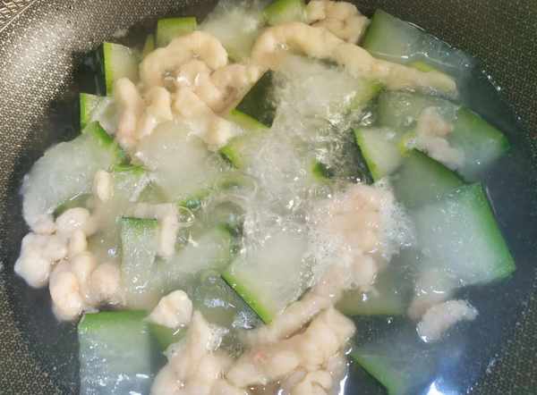 起锅烧水,下冬瓜,放姜片,盖上锅盖,煮沸后,用小火煮约20分钟至食材变软。