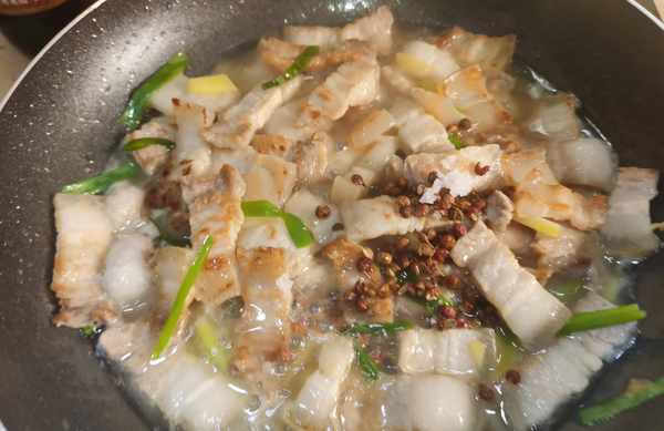原料:带上五花肉、鲜汤(或水)、醪糟汁、冰糖、花椒、葱、姜。