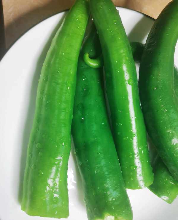 准备青椒,洗干净,里面的辣椒仔去掉。