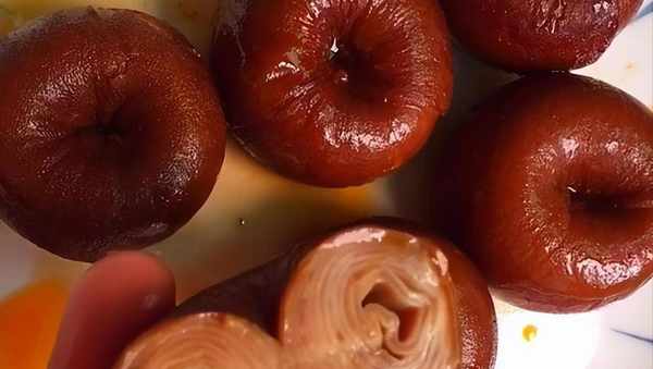 建议多清洗几遍,做美食就是准备市场麻烦一点,做起来就方便很多了,接下来我们就要装肠了,把一头装进去,用筷子轻轻地拨动,慢慢的就形成了一个小圆圈。