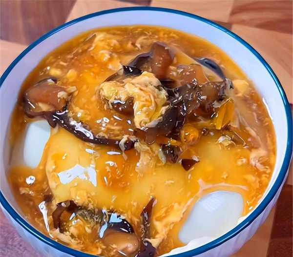 锅中烧油放葱花,翻炒出香味后倒入香菇木耳炒香,加一勺丝抽,一勺老抽,半勺盐,翻炒均匀加一碗水,煮开后淋入水淀粉,煮至粘稠后撇去浮末,淋入鸡蛋液,缓缓倒入形成蛋花,淋入香油,搅拌一番即可。