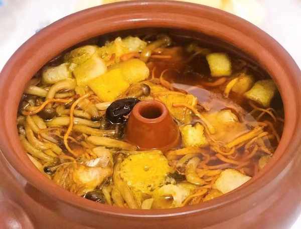 这道菜在很多宴会上都很常见,滋补效果甚好,也很适合家庭做,用汽锅蒸出来的鸡肉肉质鲜嫩,很大程度上保留了鸡肉的原汁原味,汤鲜味美,营养健康,老少皆宜的一道菜。